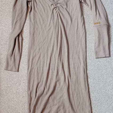 By Lien Hverdagskjole i svart farge, størrelse M. Kjolen har lang erm og en elastisk, rynket overdel med firkantet halsutringning. Dette er kjole for hverdag og til fest.