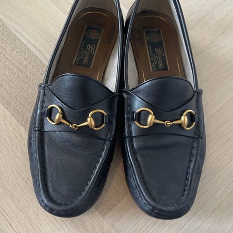 Brukt kun få ganger, ingen store bruksmerker, alt vises på bilder. Nydelig mørkeblå farge og myk skinn. Dustbag medfølger. Ny pris på slik modell er rund 6.500 nok.