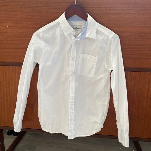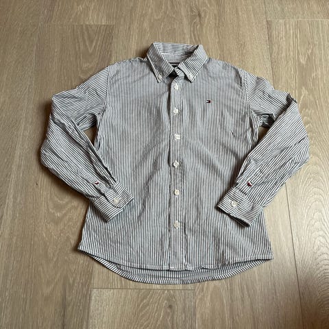 Selger pent brukt skjorte fra Hampton Republic str. 158, Stripete hvit/blå. Lin/bomull.