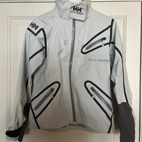 Fint brukt Helly Hansen seiler jakke i str M som tåler vind er vanntett og i pustende materiale. Jakken har noen få bruksmerker slik en ser på bildene men mulig det går bort i vask!