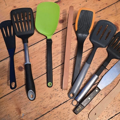 Kjøkkenredskap med gripeevne og siler ut vann f.eks til å ta kokefisk biter ut av vann, til å ha i salatbolle eller til å snu ting i stekepannen. SENDER + 76