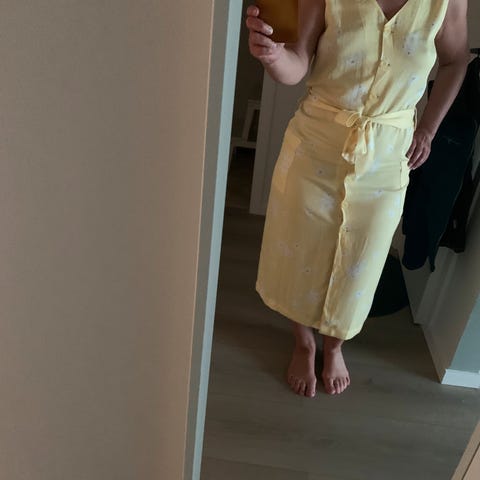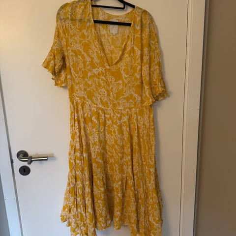 Days Like This Sommerkjole i størrelse S, gul farge med blomsterprint. Kjolen har knappelukking