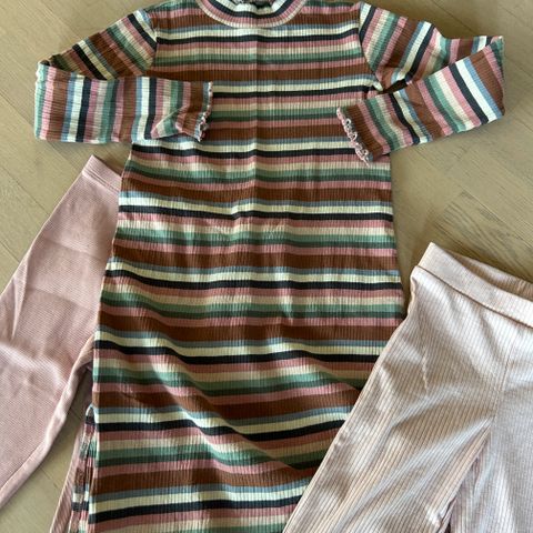Helt ny rosa bukse, div skjørt, kjole, heldress. Ganske vanlige merker + en kul, høykvalitet pysj og ene skjørtet er Ganni (sydd inn i barnestørrelse)! Selges samlet.
