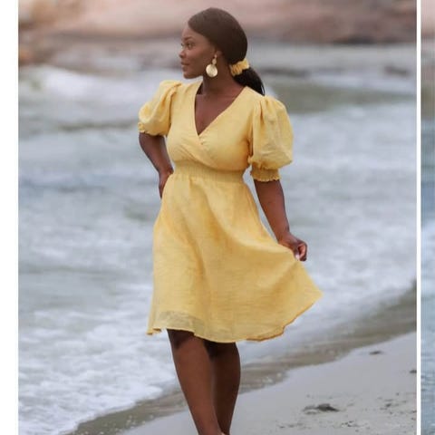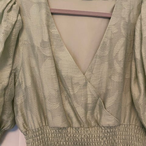 Careless Sommerkjole i størrelse M, grønn farge. Kjolen har puffermer og en elastisk midje, laget i et lett materiale som egner seg for sommerbruk.