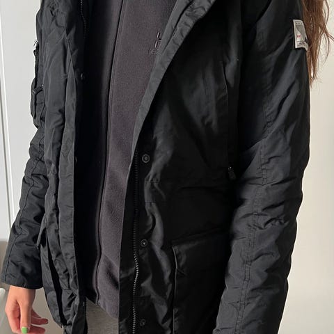 Cubus Superlight Down vinterjakke i størrelse XS for kvinner. Jakken er svart og laget med lett dunfyll for isolasjon. Den har hette og glidelås foran. Designet for å gi varme og komfort i kalde værforhold.