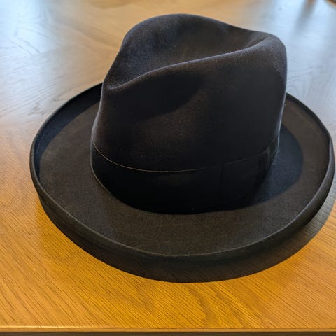 Utrolig flott herrehatt fra italienske Bordalino. Litt liten til meg (bruker 59/60. Den er solgt hos Hatte Holm. Ser helt ubrukt ut.