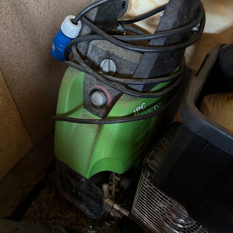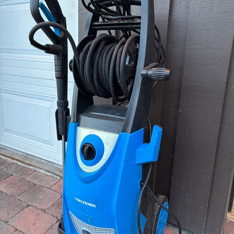 Slangen er ødelagt, men både pistolen og maskinen er ok. Ny 6m original slange koster 450 kr (5m ca 300 kr), evt ca 200 kr fra Kina.