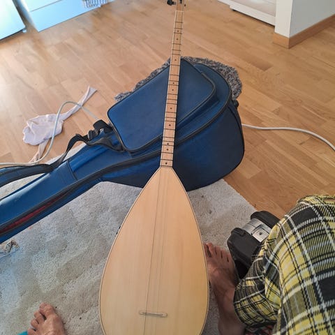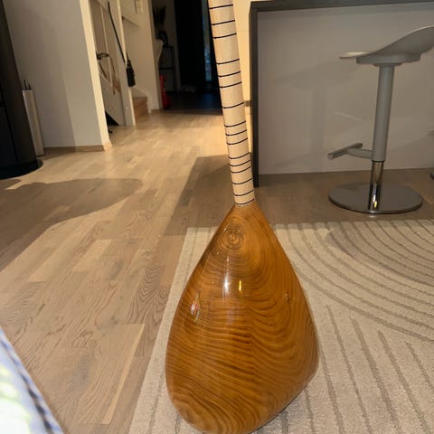 Tradisjonell Saz musikkinstrument laget av tre. Har en lang hals med justerbare stemmeskruer og en dråpeformet kropp. Brukes til tradisjonell musikk og folkemusikk.