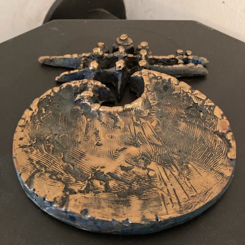 Relieff i patinert bronse av Sverre Høvren Johnsen