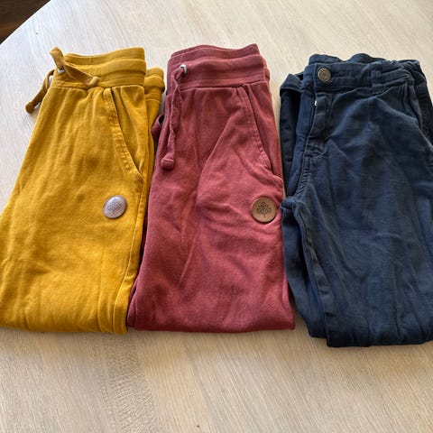 To sett med bukse og genser fra gullkorn design. Den orange genseren har noen flekker (se bilde)