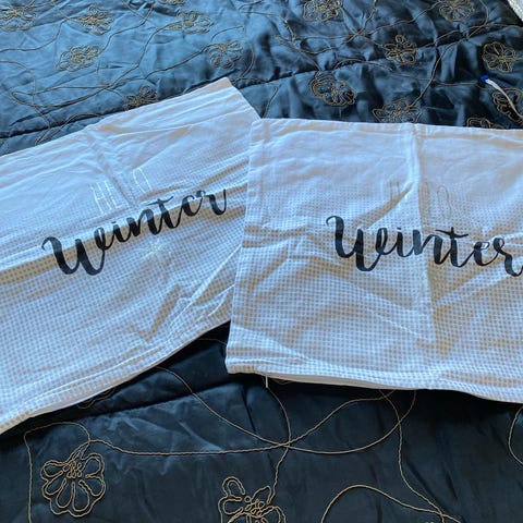 Ubrukt putetrekk mørkebrun farge tl salg 149 kr begge.pga passer ikke min hus.