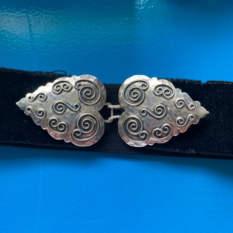 Belte - Fløyel - Elastisk - Strikkbelte - Svart - Hører til Rogaland s bunad med støypt beltespenne