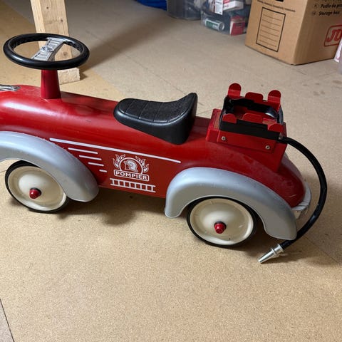 Pompier brannbil til salgs, hel og pen men mangler stigene som skal henge på siden. Må hentes