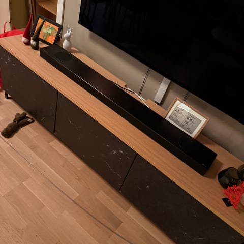 Mål: 123,2 x 7,0 x 13,8 cm (lydplanke), 21,0 x 40,3 x 40,3 cm (subwoofer), 12,0 x 21,0 x 14,1 cm (bakhøyttaler) (BxHxD)