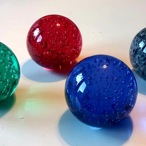 Nydelige vintage kunstglass kuler til å henge i vinduet.