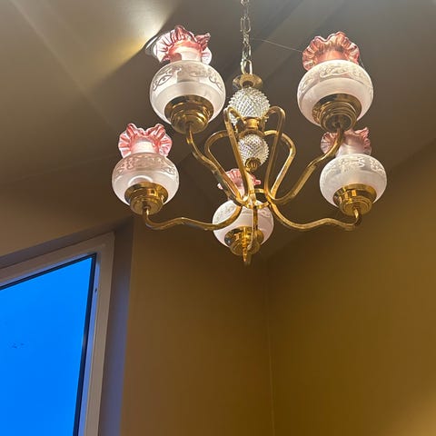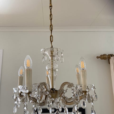 Selger en feilfri antikk prismekrone for stearinlys grunnet flytting.