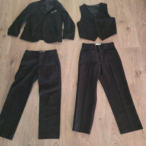 Sort dress til gutt: dressjakke, bukse og vest selges. Størrelse 116.