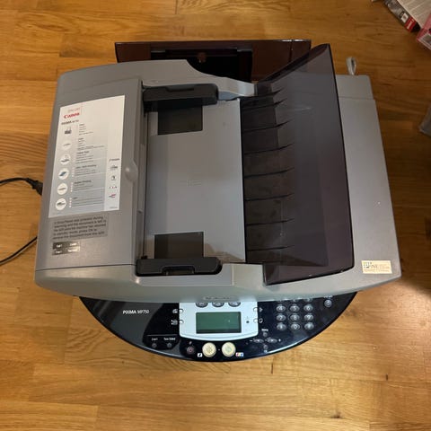 Canon MG7751 multifunksjonsskriver med skanner og kopifunksjon. Skriveren støtter A4-papirstørrelse og har fargeutskrift. Enheten har en skjerm for enkel betjening og flere innskuffalternativer for papir.