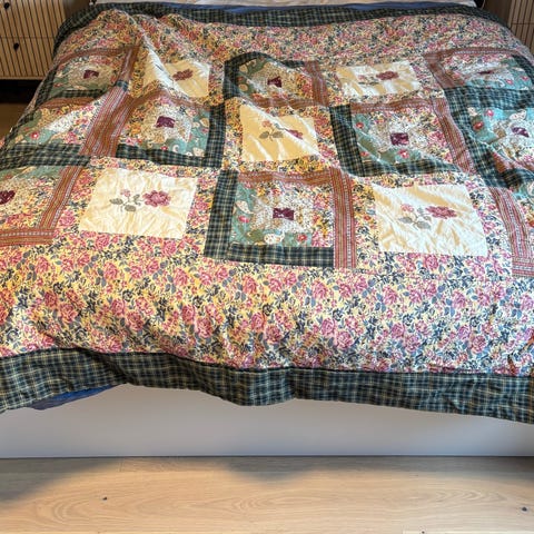 Sengeteppe i patchwork.