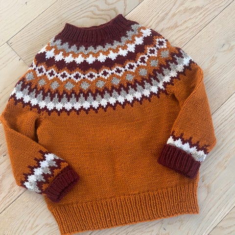 Hjemme strikket ullgenser, str 3/4år