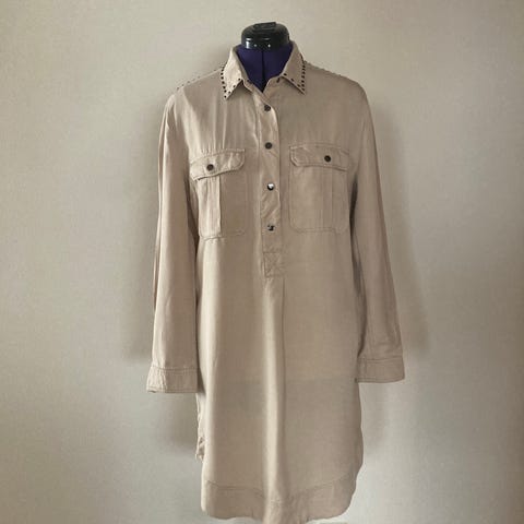Kjolen har krage i halsen og er i lekker A-fasong. Den har en utrolig flatterende passform.
