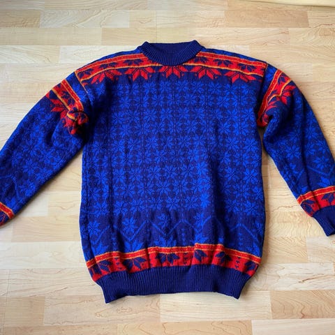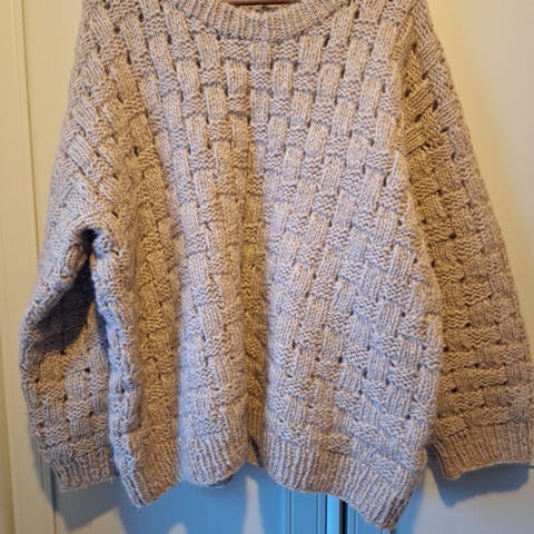 Fin og veldig myk hjemmestrikket genser i mykt ullgarn/alpakka🌺 Genseren er lite brukt.