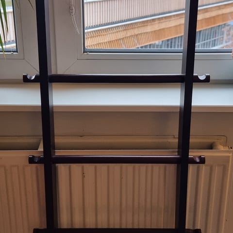 Sort stige / trapp kjøpt på kid. Til å henge håndklær, klær eller annet på. Selges da vi ikke har plass.