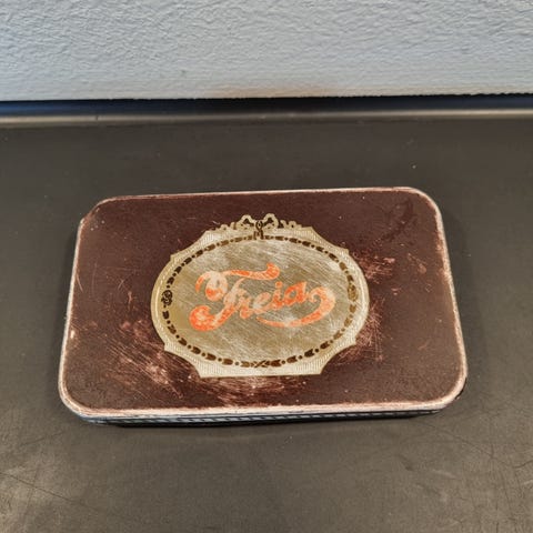 Retro FREIA metall kakaoboks som har stått i skapet årevis