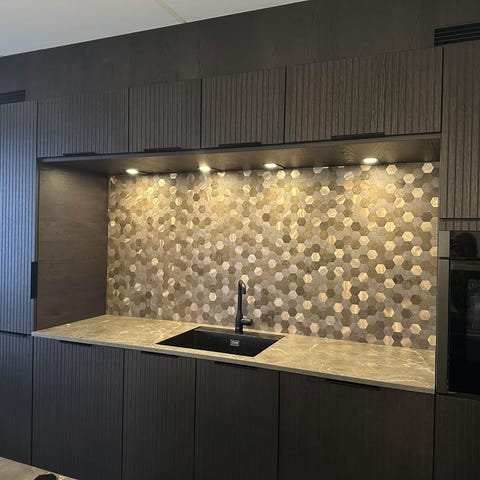 Ekstremt flotte kvalitets veggfliser til bad eller kjøkken, produsert i Spania. Selges til halv pris, 180 per eske (a 20 fliser), ca. 540 kr per kvm.