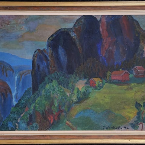 "Trollbjørka" Landskapsmaleri. Signert i - 53.