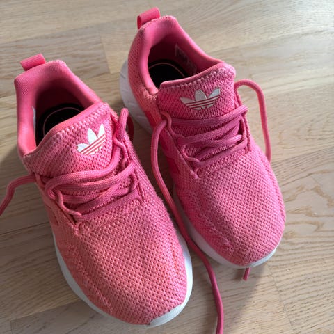 Adidas barnesko i størrelse 30, svart farge med hvite og blå detaljer. Skoene har borrelåslukking og gummisåle, egnet for daglig bruk.
