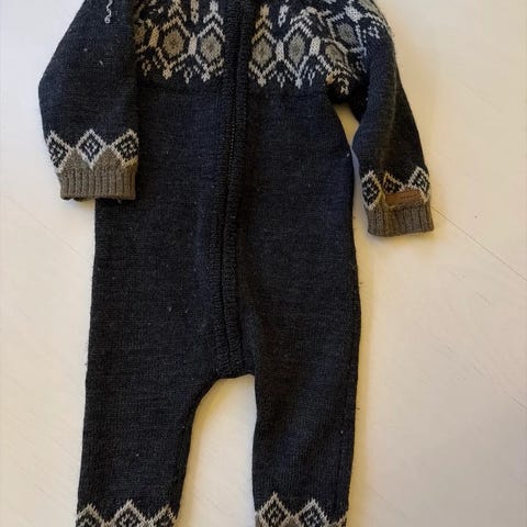 Tykk ulldress fra name it med bjørnemotiv. Nuppete, men ellers fin. Mener nypris var rundt 500.