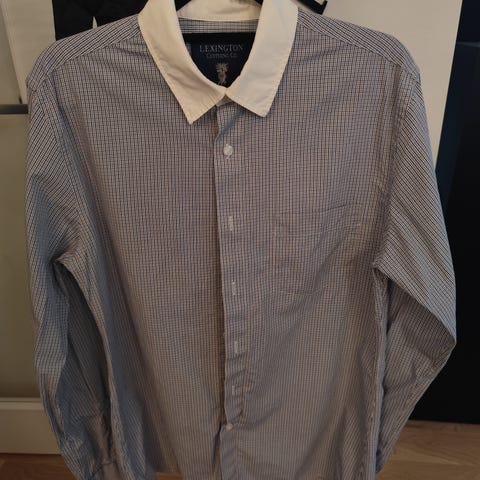 Lite brukt pen hvit herreskjorte med svarte ruter i 100 % bomull fra merket Mario Conti. Str. L.