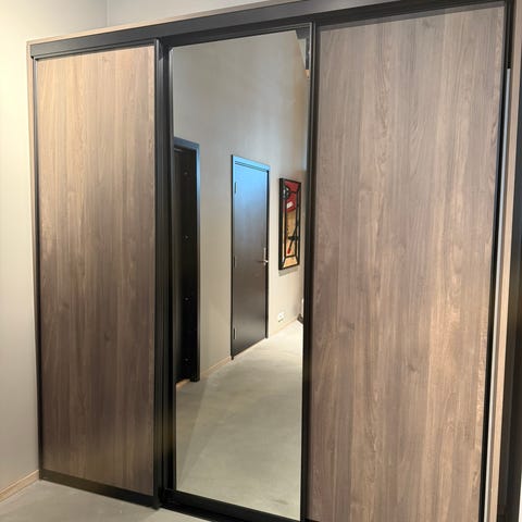 Selger helt nye skyvedører. Passer dessverre ikke til meg så selger videre så noen andre kan få nytte av de. Er tre dører. To er litt lyse grå og en er litt mørkere. Vedlig fine dører