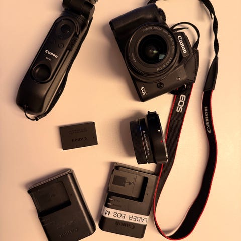 canon eos m50 med linse og deksel