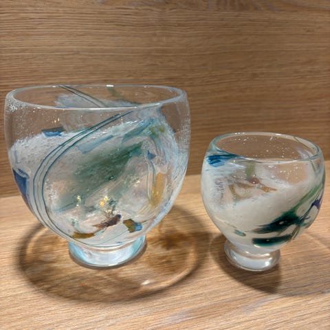 Stor flott glasert ugle i behagelige farger. Håndlaget.