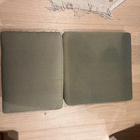Pent brukte sitteputer fra Moltex, str 43 bred x 44 dyp, 3 cm tykk. 2 stk sort farge.