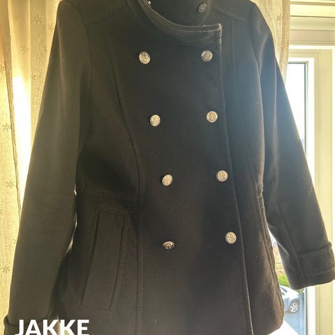 H&M Annet yttertøy i rød farge, designet for kvinner i størrelse 40. Jakken har knappelukking og lommer, med en strukturert overflate og glatt innside.