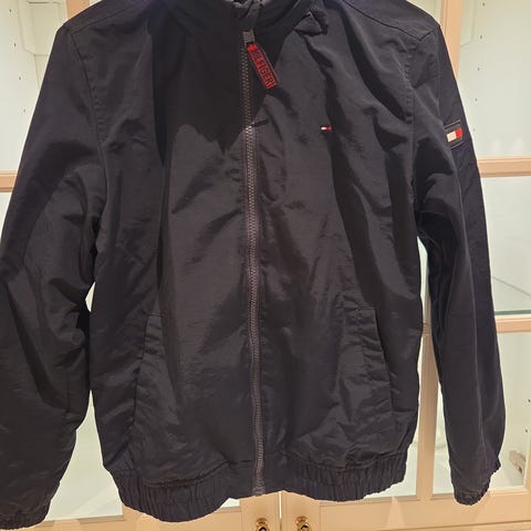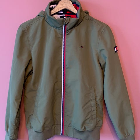 Veldig pent brukt Tommy Hilfiger Essential Jacket (vår- og høstjakke) selges for kr 250. Vind- og vannavstøtende, og med hette som kan «pakkes bort» i kragen.