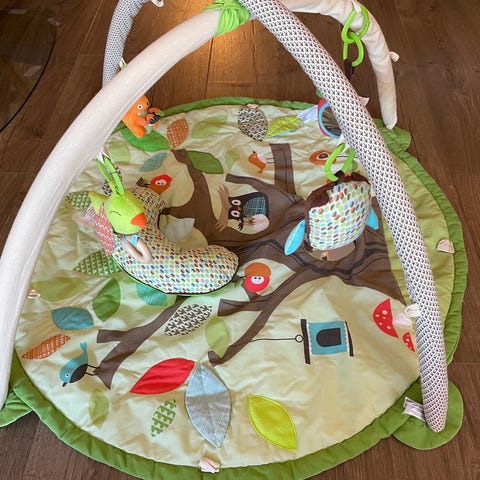 Selger en Lamaze Spin & Explore Garden babygym – den populære modellen med marihøne. Babyen kan ligge på magen oppå marihøna og snurre rundt for å oppdage de fargerike aktivitetene på matten. Dette stimulerer både motorikk og sanser på en lekende måte.