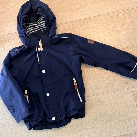Fint brukt allværsjakke fra Reima str. 104 selges for 150,-. Den har litt anmerkninger rundt armene, ellers hel og fin. Kan sendes mot porto.