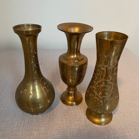 2 stk vaser. Tung og høyt. Høyde 30 cm og diameter på glass øverst 10cm. Pris 200kr per stk. Kan sendes, kjøper betaler frakt.