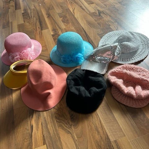 Damehatter. Selges for 250 kr pr hatt. Kan sendes mot porto.