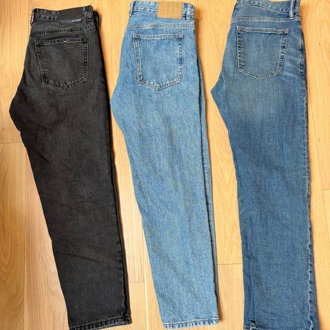 Pent brukte jeans i str xxs selges til kr 100,- samlet