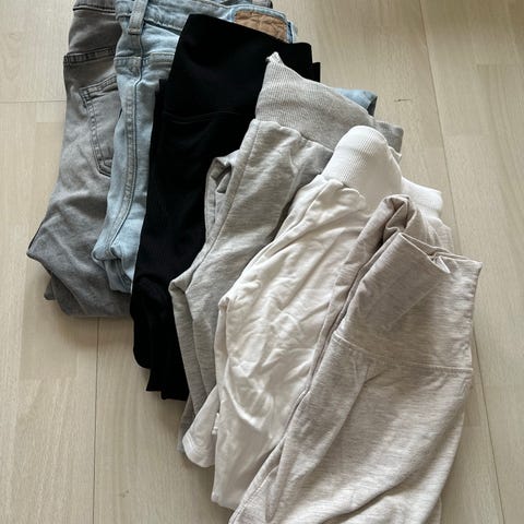 16 lite brukt bukser, fleste i str. 40, er par i 38, et par i 42. Vil passe en M.