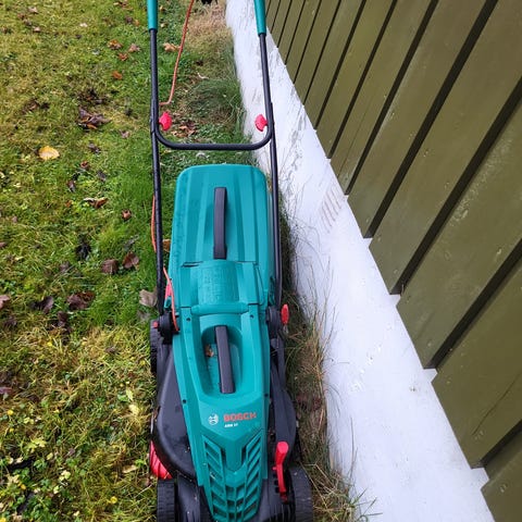 Bosch Combitrim elektrisk gress- og kantklipper med ledning. Utstyrt med håndtak for enkel styring og justerbar arbeidsbredde. Egnet for trimming av gresskanter og små områder. Produktet har synlige bruksmerker og er beregnet for privat hagebruk.