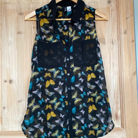 1 topp fra oasis, sorte prikker på sort stoff. Nedre del av rygg er gjennomsiktig