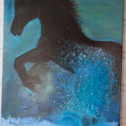 Malt i 1981. Margrethe Grav bosatt i Buvika. Har stort atelier på låven. Er nå pensjonert veterinærassistent som i tillegg til å stelle dyr, har jobbet mange år i interiørbransjen. Kan se kunstutstilling 18/9-21 på Youtube
