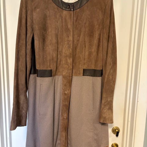 Frakk fra lille bærekraftige italienske Album di Famiglia. Sort "krøllet" litt kraftig bomull med naturfarget for i bomull. Knappelukning men de nederste er til pynt, slik at man kan se evt kjole eller skjørt :) Str Small, men den er overside og kan passe mange. Helt som ny og selges da jeg har for mye yttertøy. Kjøpt for godt over 10 000kr. Frakken er nummerert, da kun lages få i hver modell.