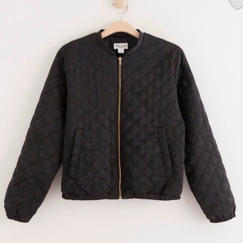 Lindex jakke i hvit farge, størrelse M. Jakken har quiltet mønster og glidelåslommer foran. Laget for kvinner.
